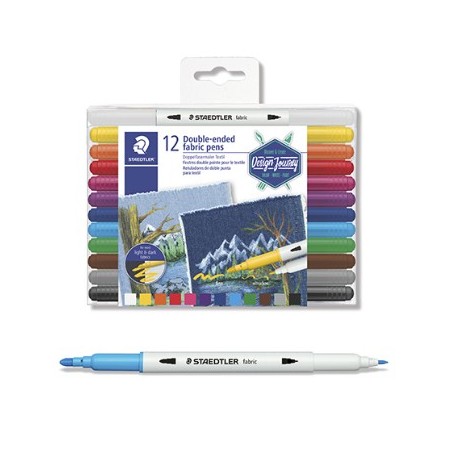 As doze cores diferentes permitem dar um toque criativo e pessoal ao seu tecido. Largura da escrita: 3,0 mm e 0,5-0,8 mm.